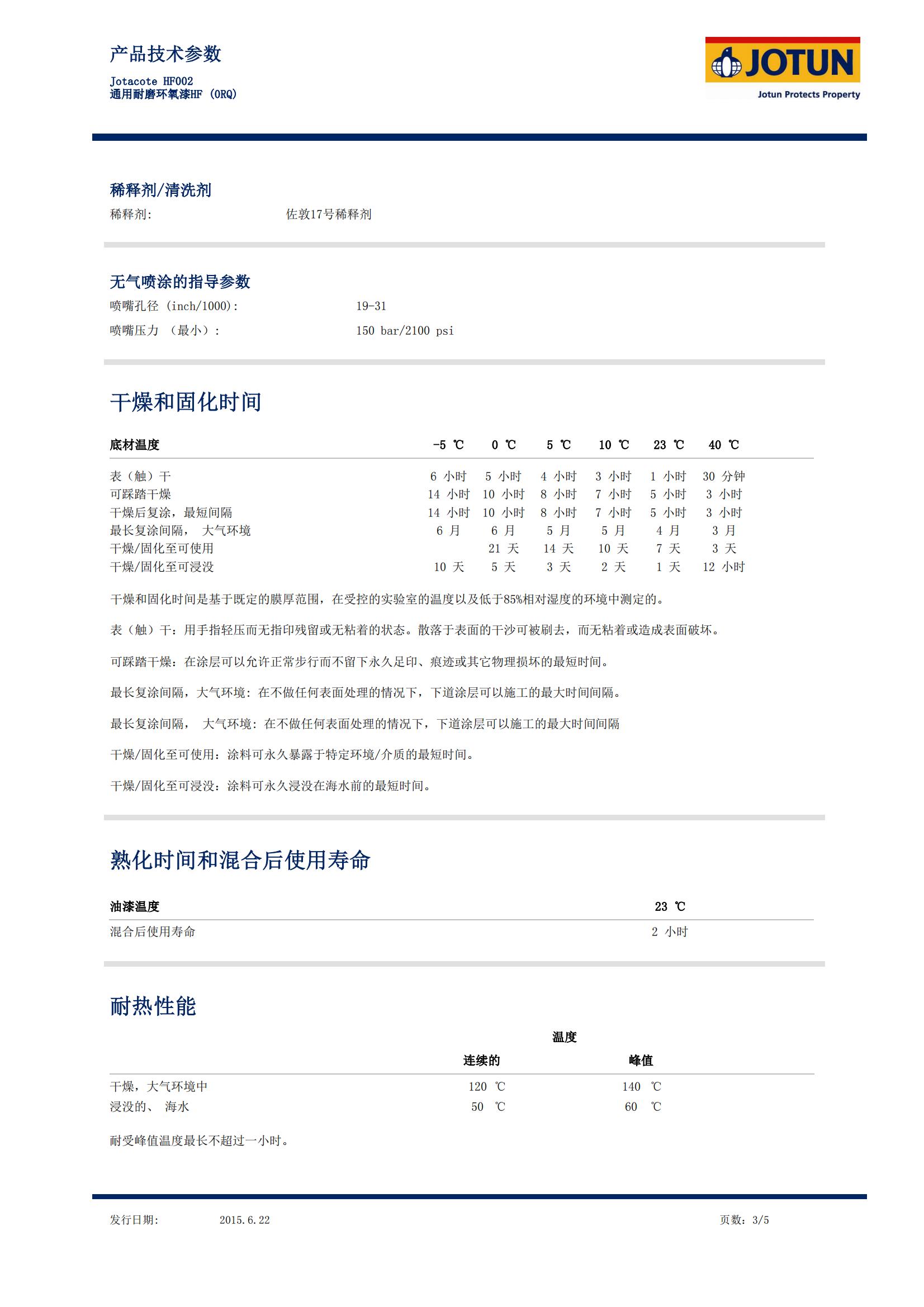 • Jotacote HF002 0RQ:這是一種雙組份聚胺固化純環(huán)氧涂料。 它是具有快干、含9%的鋁粉顏料和耐磨性好等特點的厚漿型產(chǎn)品。專用于新造船的全年全方位通用型快干涂料。 在大氣環(huán)境和浸沒環(huán)境下可作為底漆、中間漆、面漆或單道涂層系統(tǒng)。適用于適當處理的鋁、碳鋼、鍍鋅鋼、涂裝車間底漆的鋼和不銹鋼底材。 可在表面溫度低于0°C時施工。典型用途:外部和內(nèi)部區(qū)域,包括船體外殼、上層建筑、甲板、貨艙和壓載水艙。 本品有很好的柔韌性,使其非常適合于原油、化學品和穿梭油輪中的溫度變化。 通過了和一系列車間底漆的PSPC交叉實驗測試。 滿足客戶對鋁色顏料的特定需求
